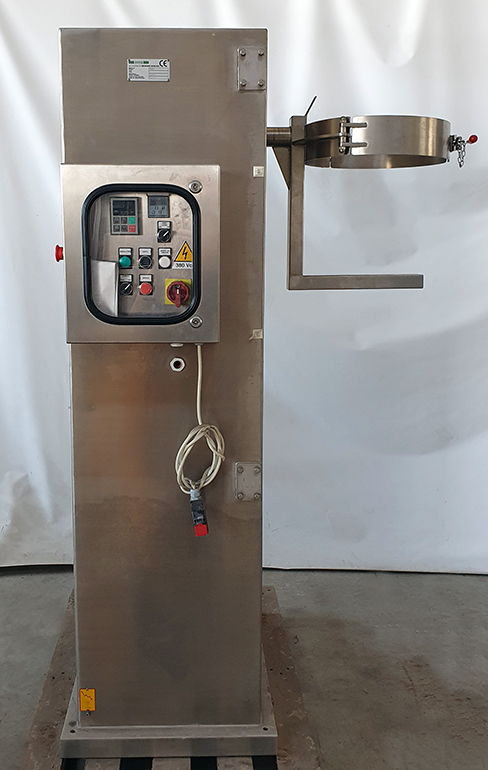 KEY FEATURES: Controlled-rotation blender designed to mix powders directly in the drum, reducing product handling, process time and contamination risks. Handling system that allows loading, locking, tilting and rotation of the drum, with programmable mixing cycles managed through the control panel.
