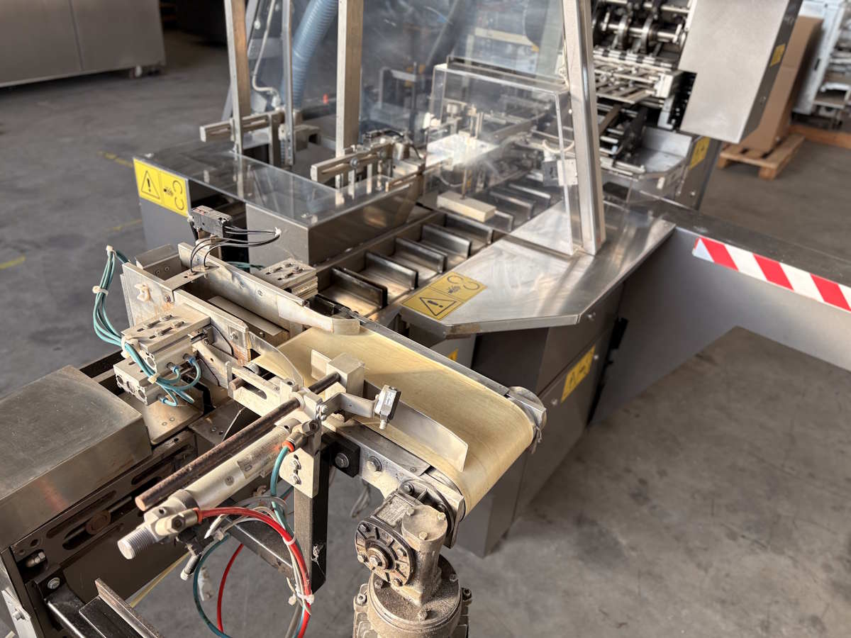 Produzione reale: variabile in base a tipo di prodotto, forma e dimensione dell’astuccio, efficienza alimentazione e operatività della linea — stimabile generalmente tra 30 e 45 astucci/minuto in condizioni realistiche e con settaggi e manutenzione curati.