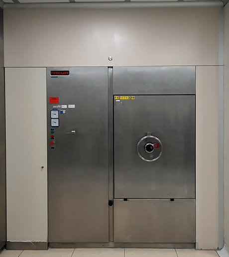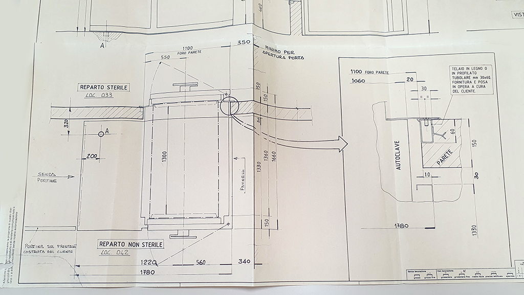TIPOLOGIA: Autoclave a vapore, progettata per installazione passante tra area non sterile e reparto sterile, con separazione fisica dei flussi.