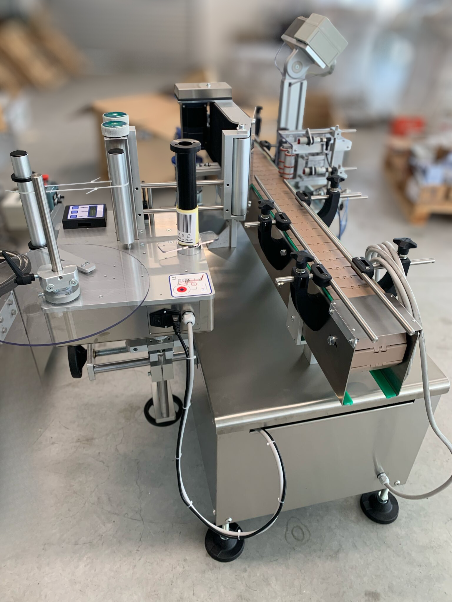 TIPOLOGIA: Etichettatrice monotesta automatica per applicazione di etichette autoadesive in bobina, con modulo opzionale Indexer per etichettatura avvolgente e fronte/retro su contenitori di diversa geometria.