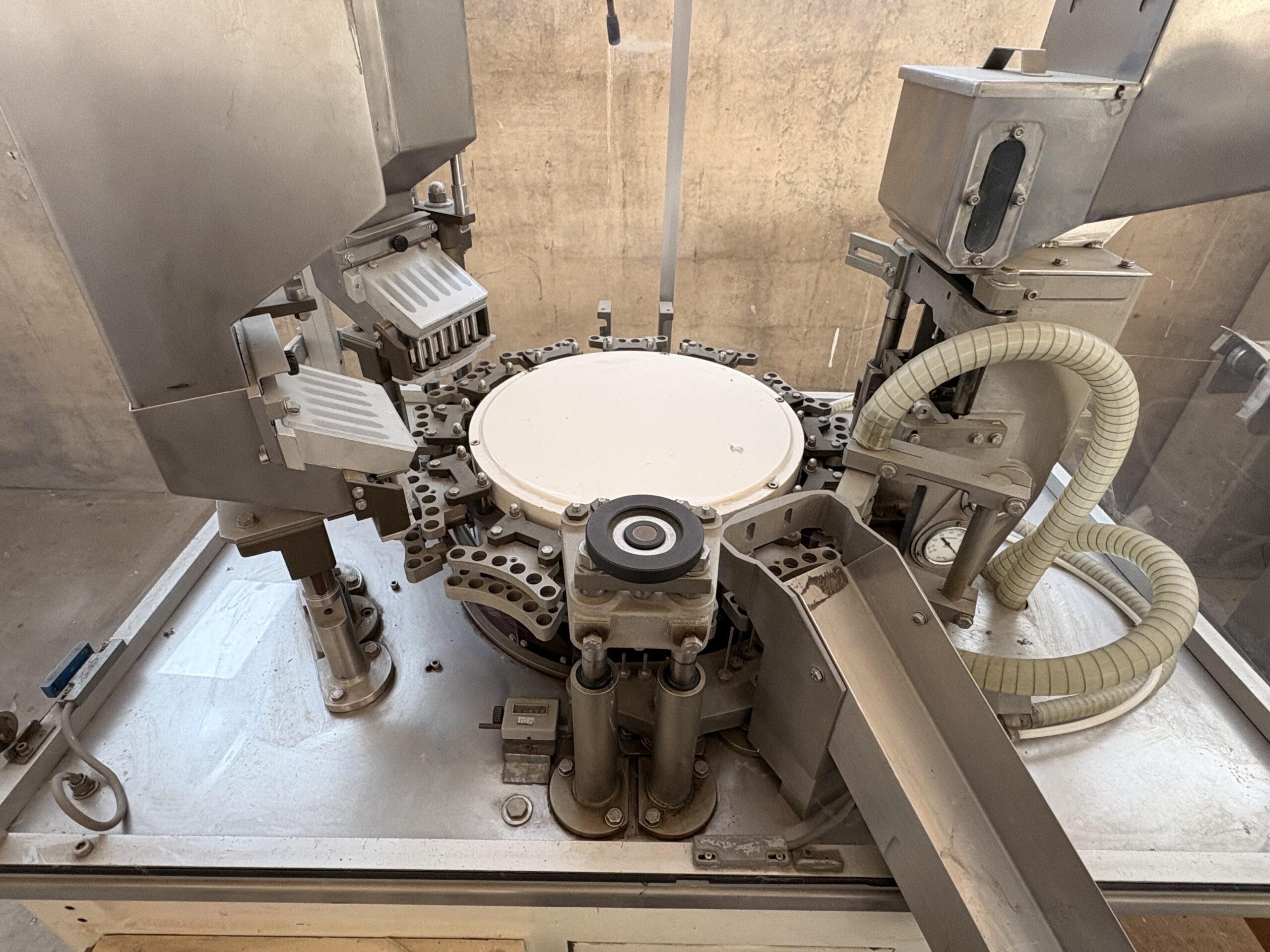 ELEMENTI CHIAVE: La Macofar MT12 è una macchina automatica progettata per il riempimento di capsule rigide in ambito farmaceutico e nutraceutico. Il ciclo integra alimentazione e orientamento capsule, separazione corpo/testa tramite sistema a vuoto, dosaggio prodotto, chiusura ed espulsione automatica delle capsule finite. La struttura robusta e la semplicità costruttiva garantiscono affidabilità operativa e facilità di pulizia e manutenzione. Ottima base per revisione e retrofit con aggiornamento dei sistemi di controllo.