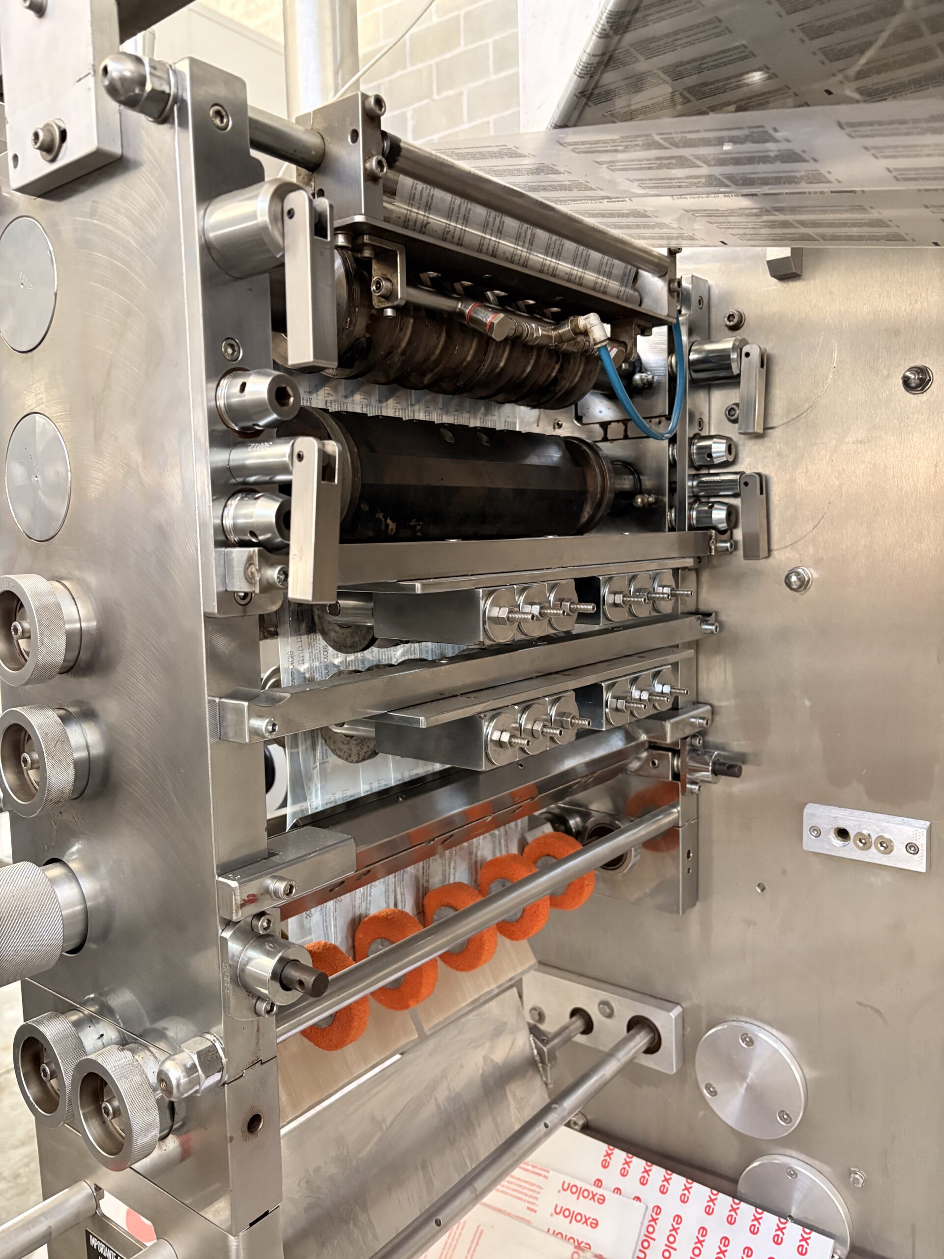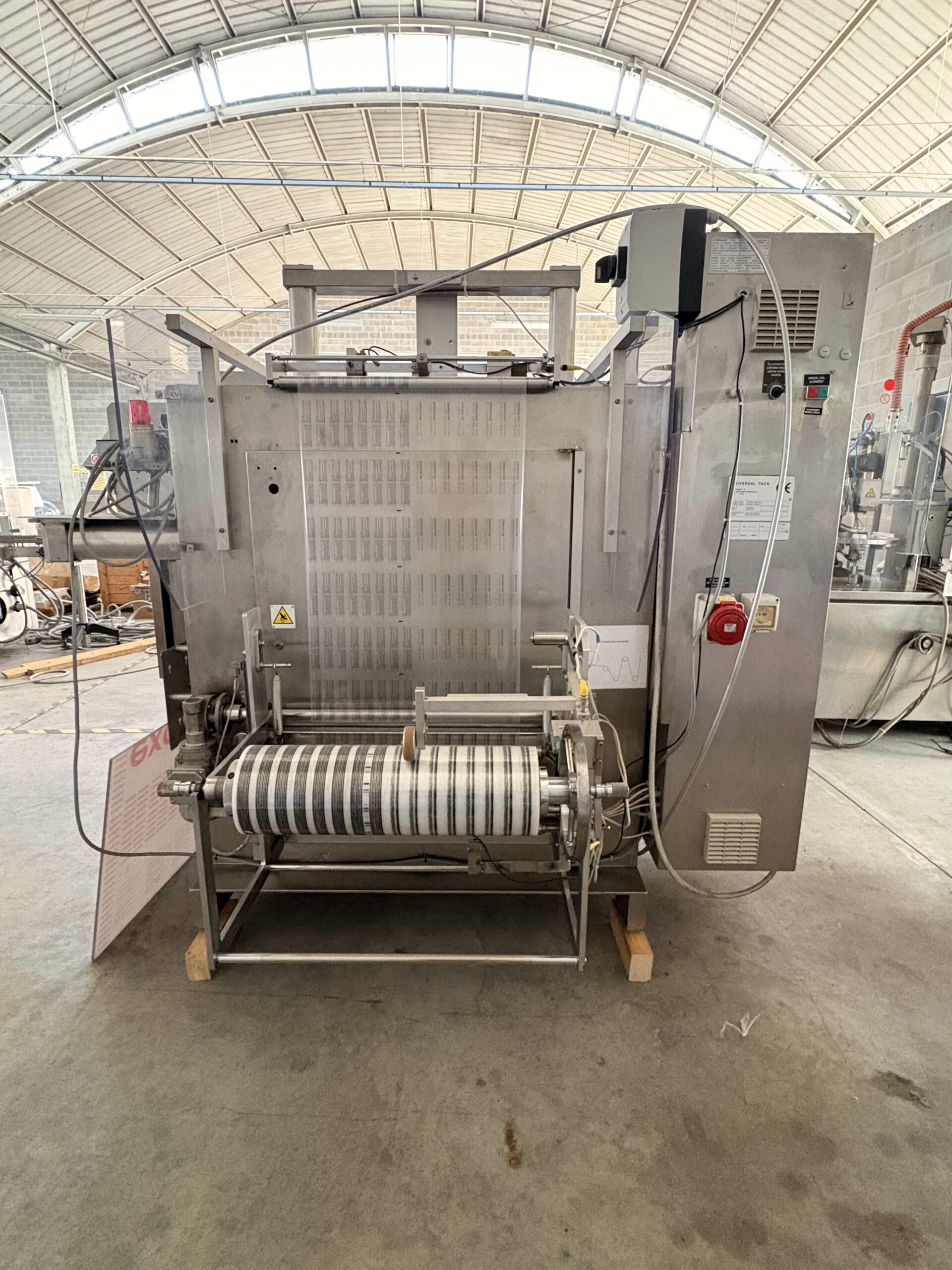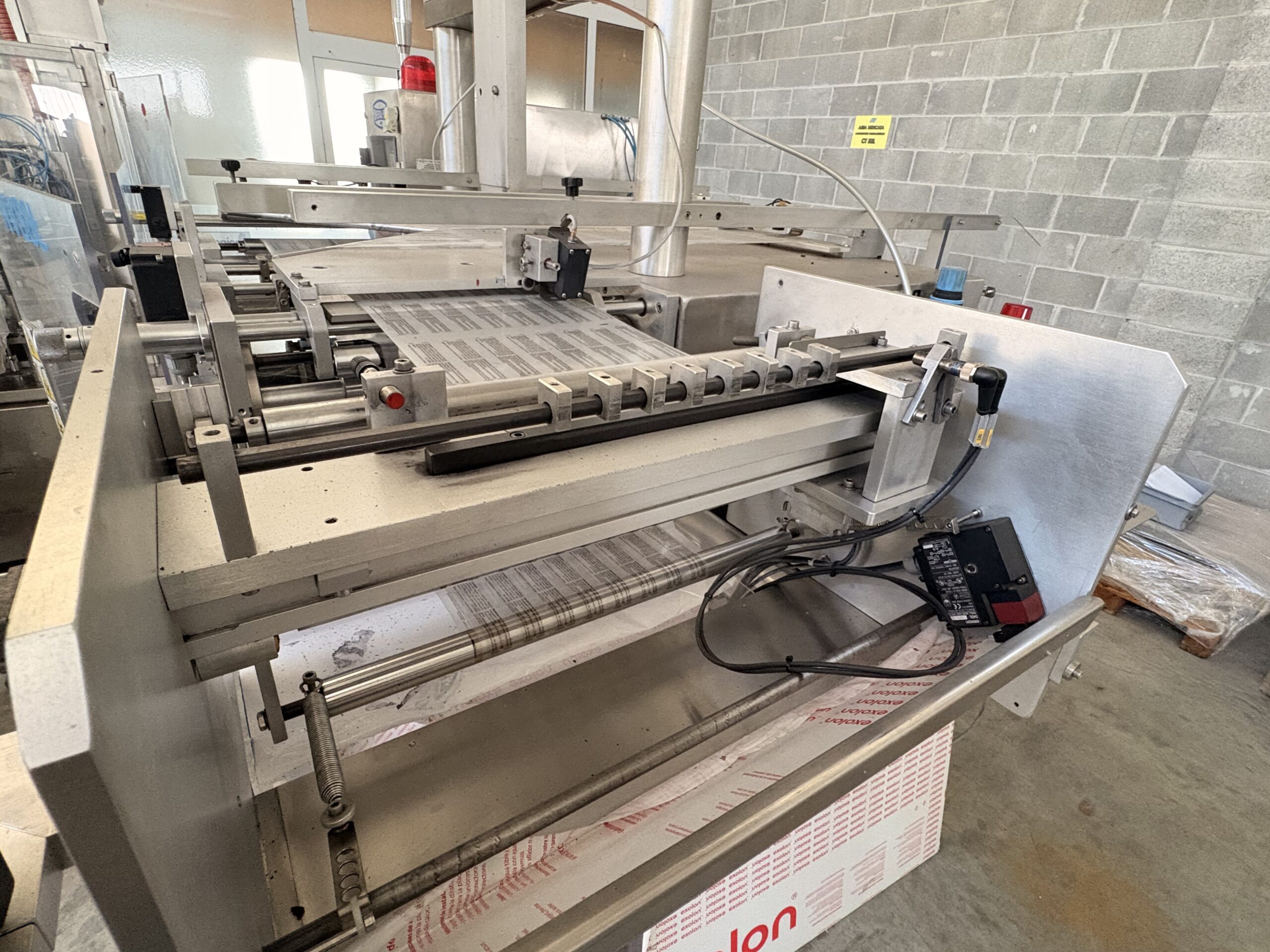 ELEMENTI CHIAVE: Macchina multivia progettata per produzioni ad alta velocità partendo da bobina di film termosaldabile in piano. Il sistema forma il tubo di film, dosa simultaneamente su otto canali, esegue la saldatura longitudinale continua e la saldatura trasversale intermittente, quindi taglia e separa le bustine in modo perfettamente sincronizzato. La macchina è fornita completa di dosatore dedicato per prodotti semi-liquidi, stampante ink-jet integrata, set di ricambi, manuali d’uso e manutenzione.