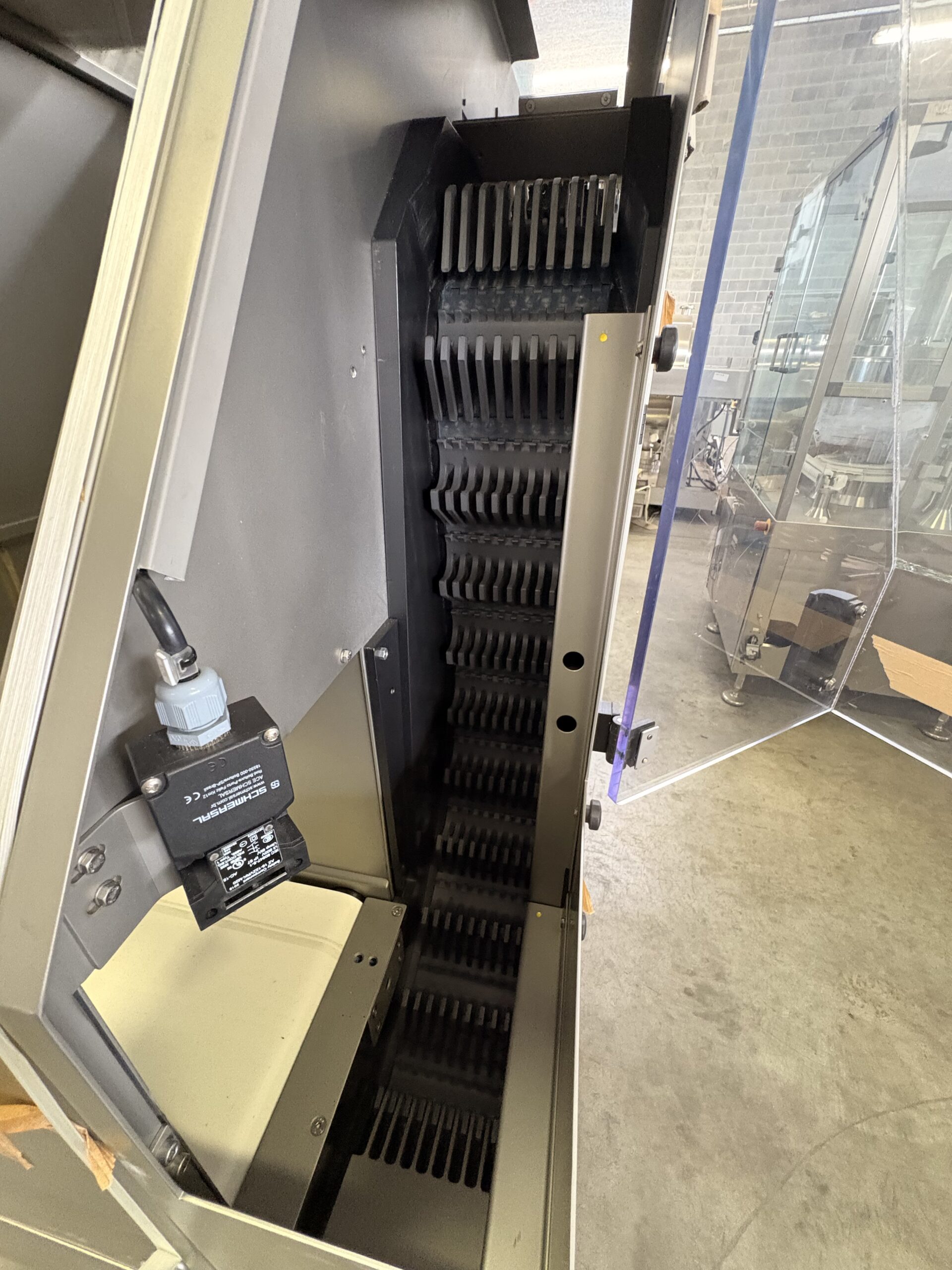 ELEMENTI CHIAVE: Il Packfeeder MI-100 V3 è un sistema di riordino flaconi estremamente compatto e silenzioso, progettato con una configurazione monoblocco che riduce drasticamente l’ingombro a terra. La serie InLine si distingue per la semplicità d’uso “plug-and-play”: la macchina non richiede aria compressa per il funzionamento, il che riduce i consumi energetici, la rumorosità e la contaminazione da particelle. Il trattamento dei contenitori è estremamente delicato, rendendolo ideale per prodotti farmaceutici e cosmetici sensibili. Il cambio formato è rapido e intuitivo, eseguibile senza l’ausilio di attrezzi, garantendo tempi di fermo macchina minimi.