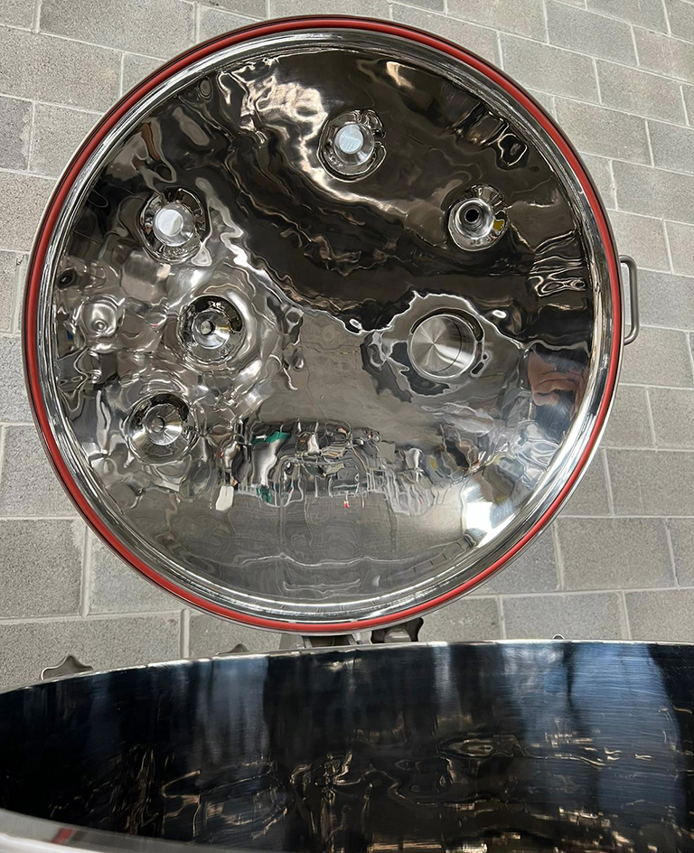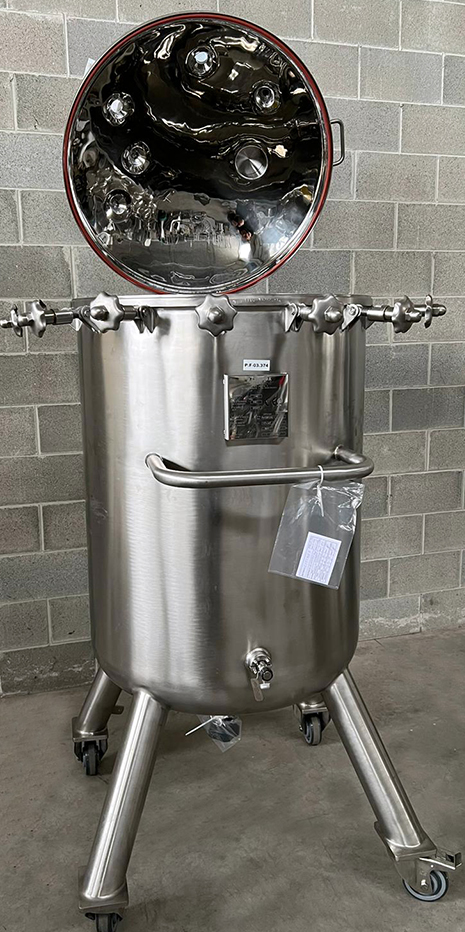 TIPOLOGIA: Serbatoio in acciaio inox, su ruote, destinato allo stoccaggio e alla gestione di prodotti liquidi