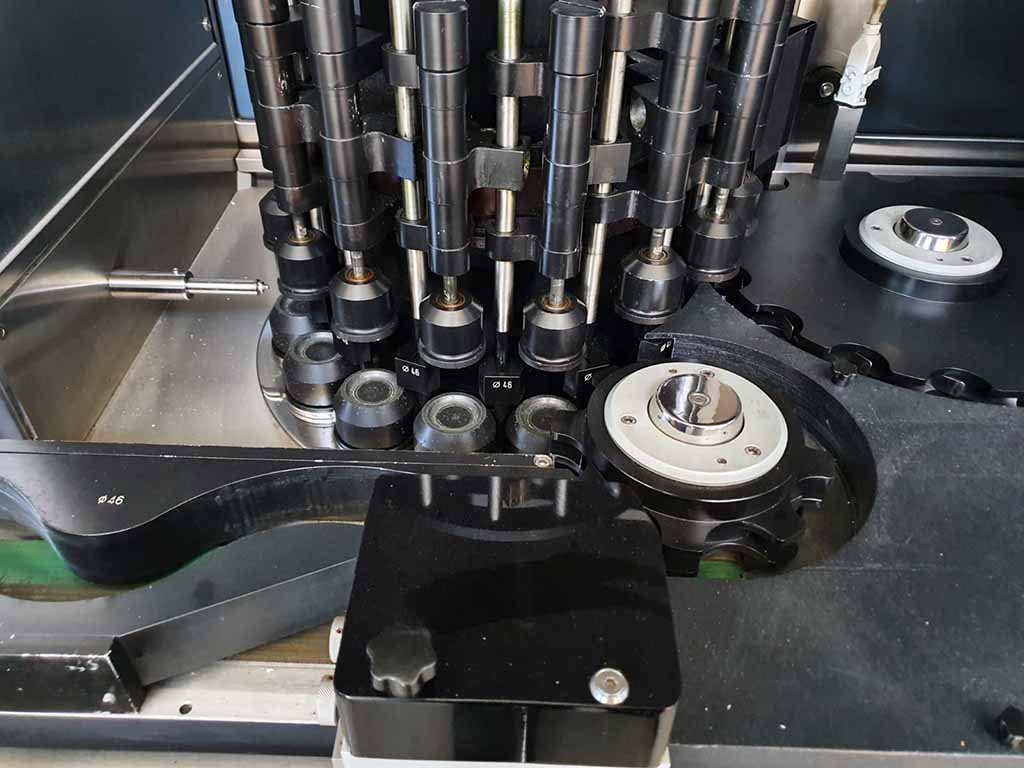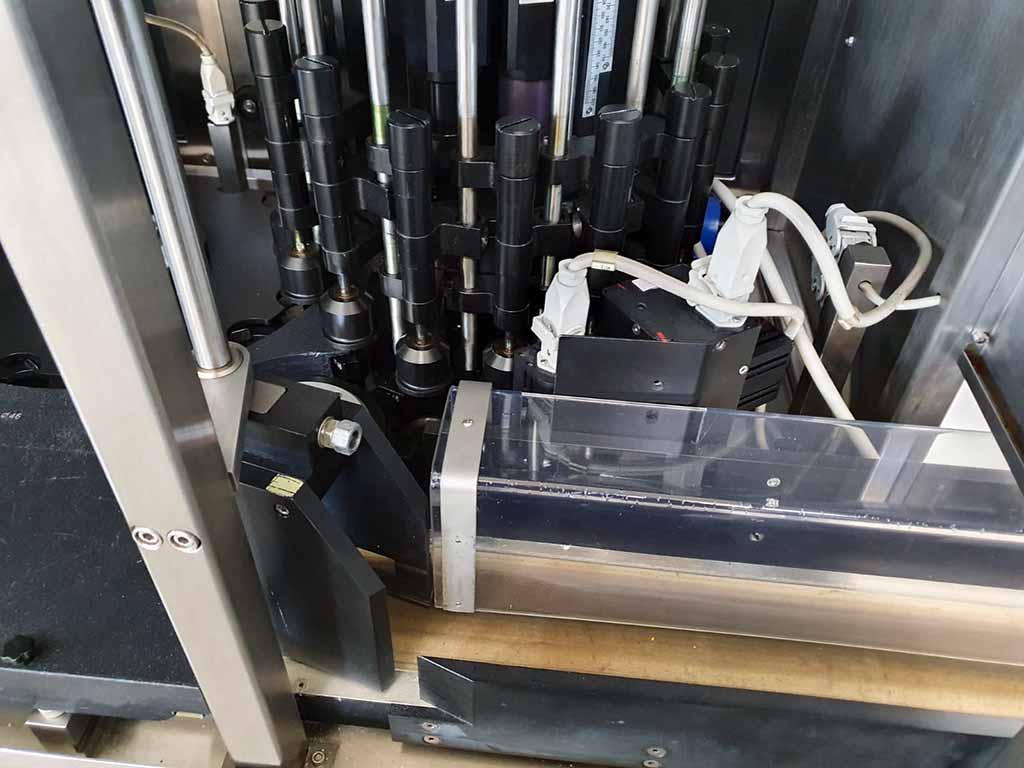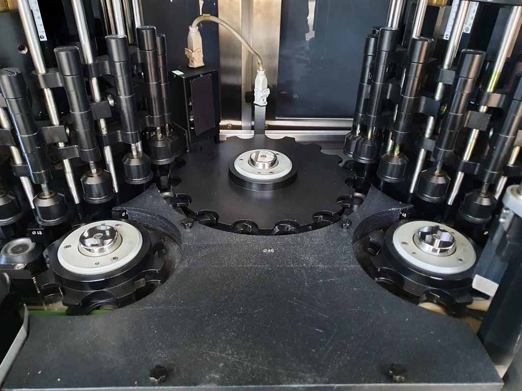ELEMENTI CHIAVE: Macchina di ispezione automatica con trasporto lineare e stazioni di controllo visivo integrate. Sistema di illuminazione dedicata e telecamere per analisi in tempo reale di integrità del flacone, presenza di particelle, difetti superficiali, corretto livello di riempimento. Unità di scarto per separazione di flaconi non conformi e conteggio dei pezzi accettati/rifiutati. Interfaccia operatore per gestione ricette, parametri di visione e tracciabilità del lotto.