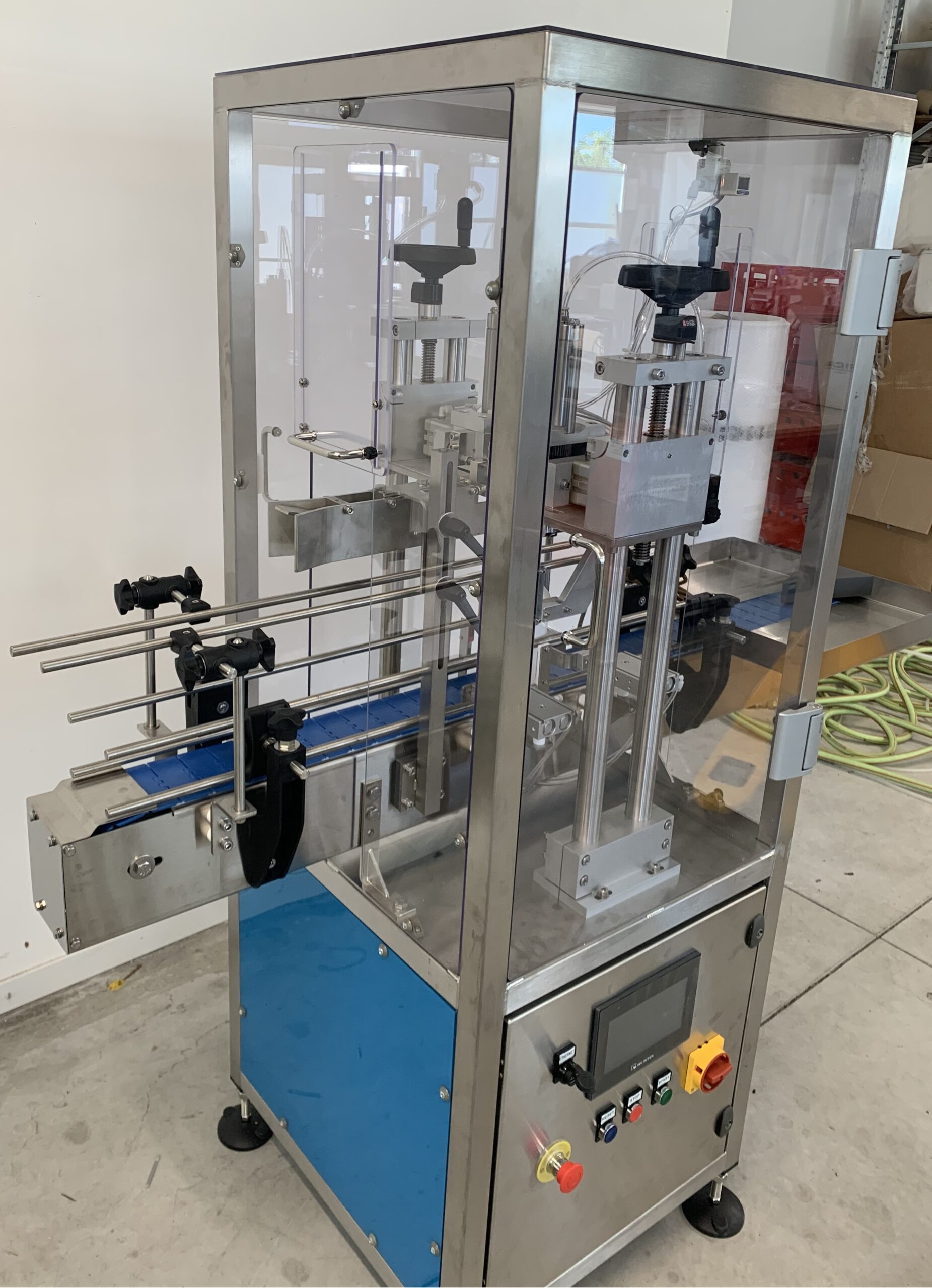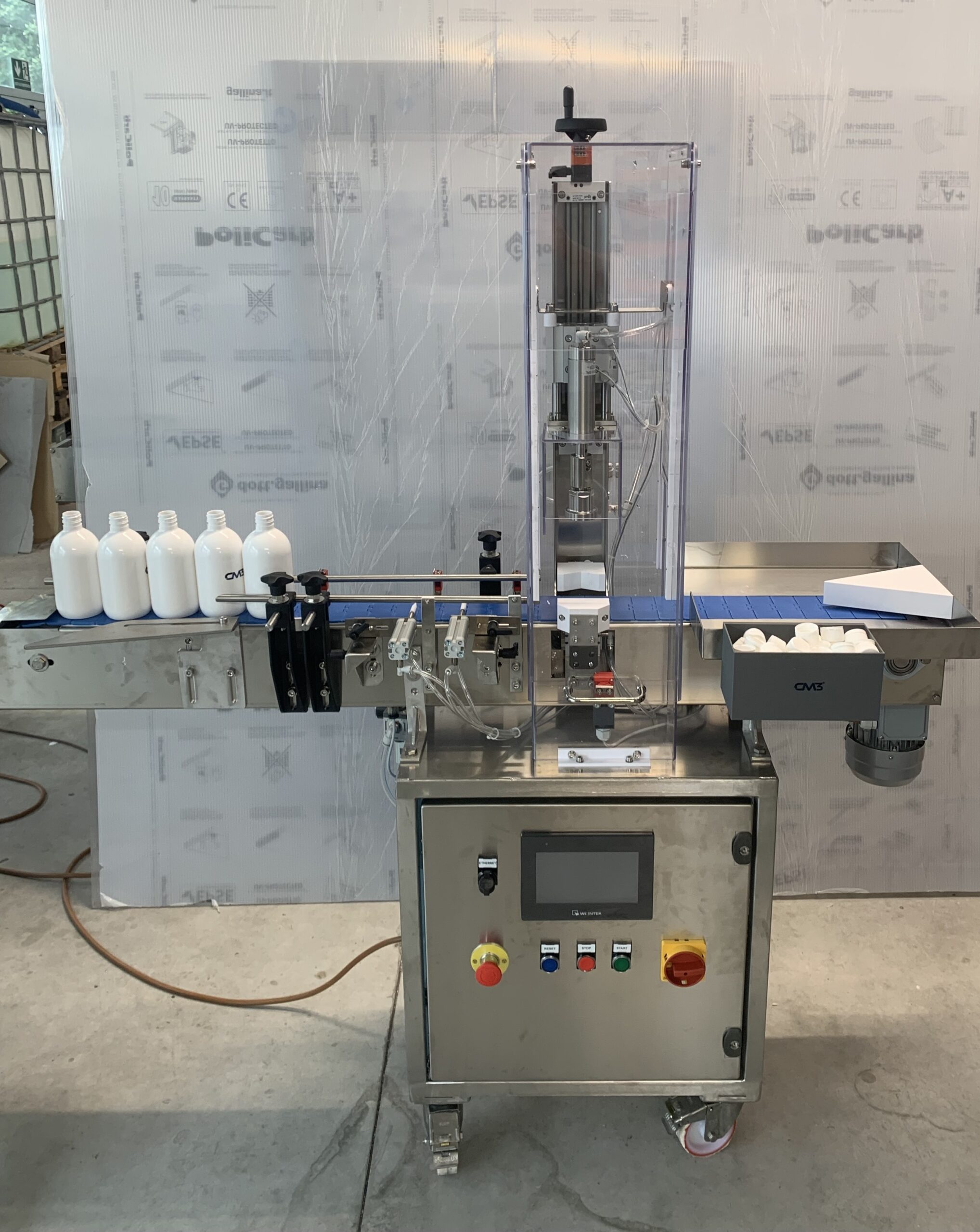 TIPOLOGIA: Tappatrice nuova semi automatica ideale per essere affiancata ad un sistema semi-automatico di riempimento.